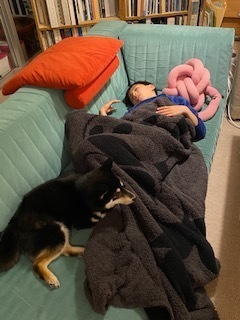 新学期も始まり、お稽古も頑張り、ソファで撃沈。もう、私も運べません。ローランも病み上がりですし。