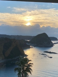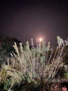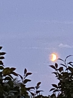 皆既月食の日。露天風呂から眺めた月