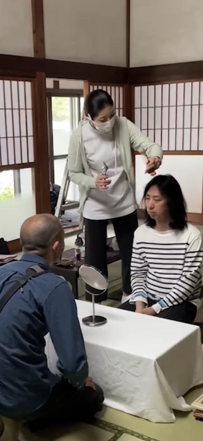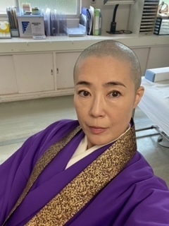 付き合いたての頃から、"忍はスキンヘッドにしたら絶対ゴージャスだ、僕のためにやって"と言われたことがあるけど、ずっと無視し続けた。和物のかつらをかぶるときに羽二重姿になるのだけれど、その姿を見るたびに、"やっぱり忍はスキンヘッドが似合う"と連呼された。でも、無視し続けた。そしてここにきて剃髪をするかしないかを選択するにあたり、迷った。今は性能の良いカツラもあるし大丈夫かと思ったり、でも、頭の形悪かったら映った時やだなーとか、でもやっぱり、私は剃るでしょ。それがテラジマシノブでしょ!と思ったり。豊川さんが"剃ったら頭に呪文が書いてあったりしてね"なんて笑わせてくれたり。まあ、迷いました。剃らないという選択肢も十分考えました。でもやっぱり、90%私の気持ちは固まってたけど最後にポンと叩いたのはローランの誉め殺しの言葉でした。見てもいないのに。。。