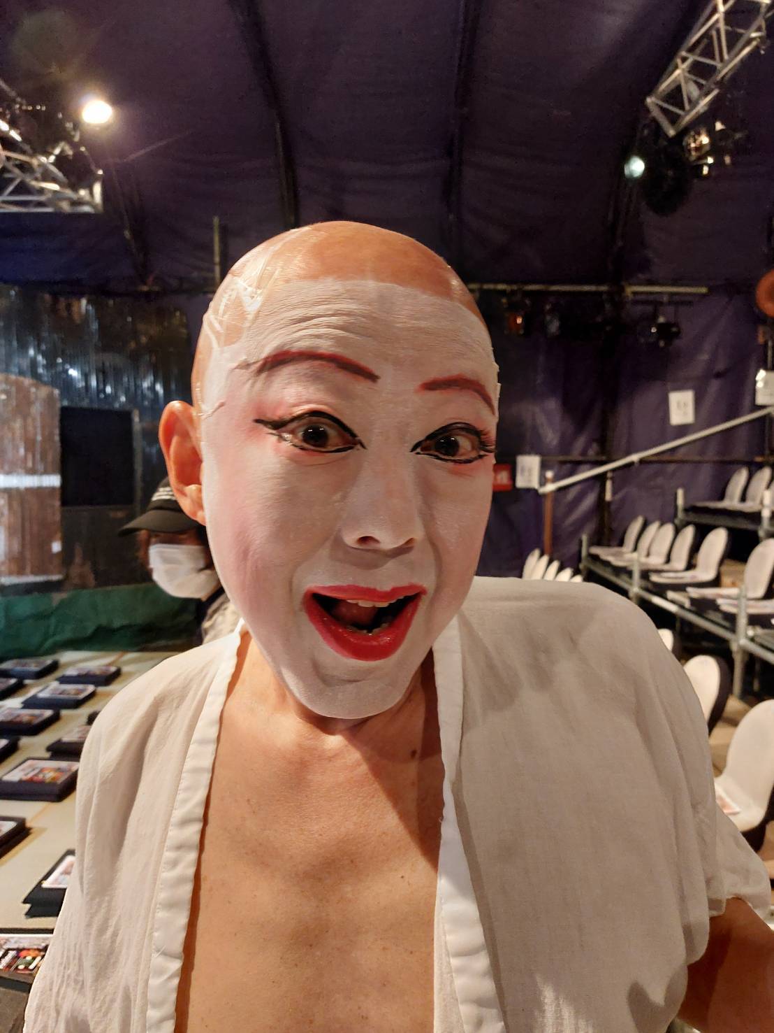 だいぶ前に撮ったから髪の毛ありますね私。コントに真剣に取り組んでいる友近さんはやっばりかっこよかったです。失礼ながらもうちょっとふざけてる現場なのかと思ったら、スタッフの皆さんがものすごいカメラアングルとか考えていて、撮り残すまいとすごいカメラの数で回してて。びっくりしました