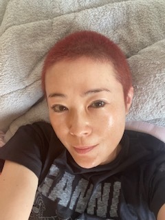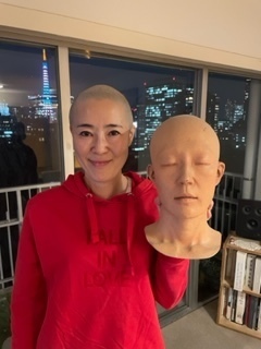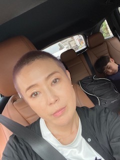 ヘアメイクの光倉さんと坊主ショット。