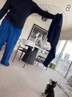 あまりにずっと続くからますます気になって真剣に探してみると、向かい側にノアと同じ黒柴ちゃんが歩いては、しゃがみ込み悲鳴をあげるを繰り返してる。足やっちゃったのかな、股関節かな。姫ちゃんもいろんなことやってきたから大体わかる。やっぱり気になってノアを抱えて向かい側に行ってみる。"大丈夫ですか?"返事がない。前に回り込むと日本の方ではないようで私の赤い坊主頭を見るなり逃げるようにリードを引っ張り先を行こうとするけど、犬の方は悲鳴と共に歩かない。ノアも心配した顔をしている。たまらず私がその子の足の方を見ると足ではなくまだでかかったうんちがお尻についててそれが気持ち悪いから泣いているのに気がついた。