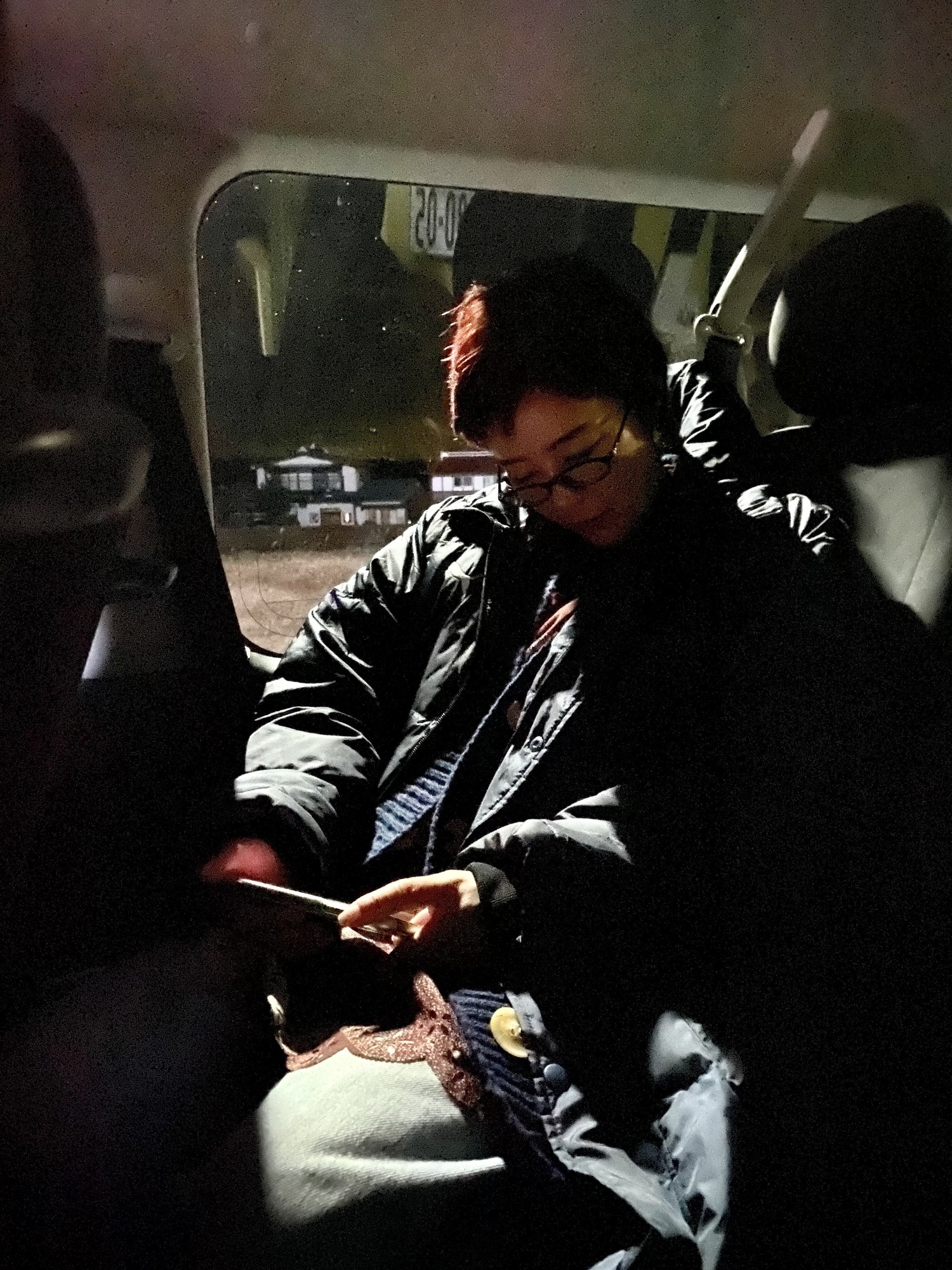 明け方のロケ。サッカー観戦しながら撃沈している私をLさんに激写された。