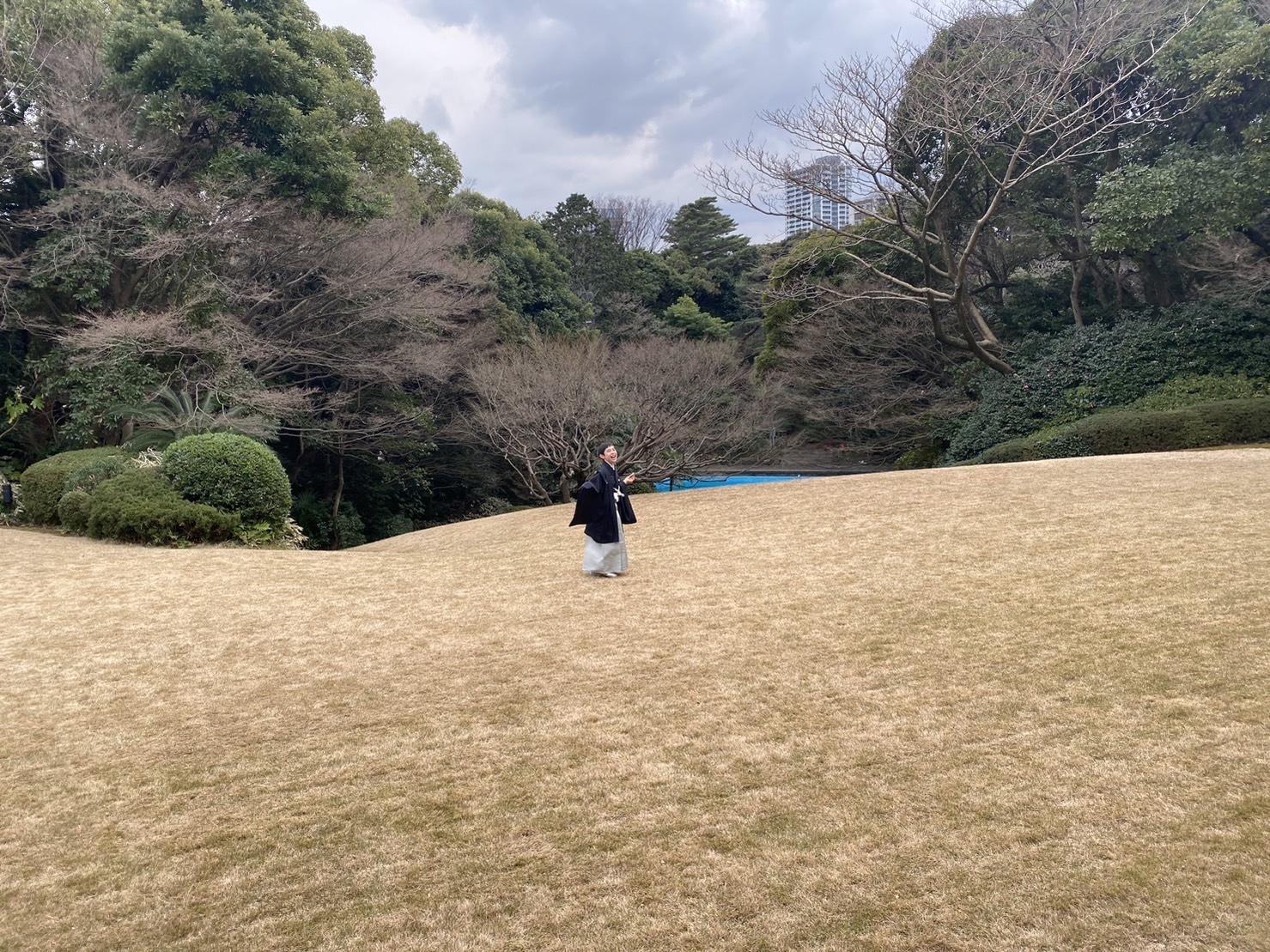 さて、記者会見が終わり懇談会が始まると草履を脱ぎ、袴をたくし上げいきなり縦横無尽にフランス大使館の庭を走り回る眞秀。その楽しそうなこと。さっきまで"おとなになったなぁー"なんてしみじみしてたんだけど、やっぱりこれがいつもの眞秀だ。黒紋付だったからノアが狂ったように公園を走る姿にダブル。彼なりにバランスを取ってるんだろうな。