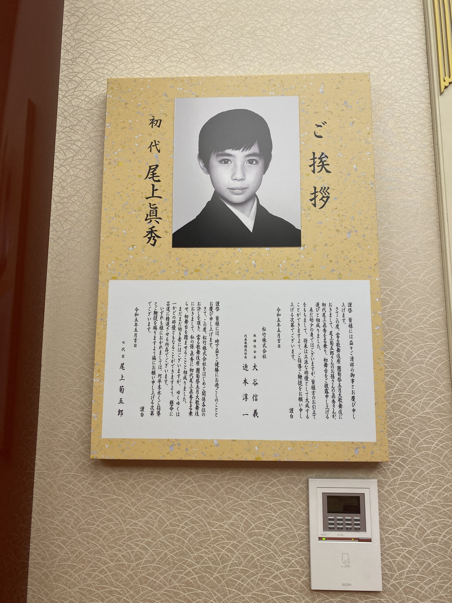 寺嶋眞秀を楽屋に下げていましたが、尾上眞秀になるため、頂きました。