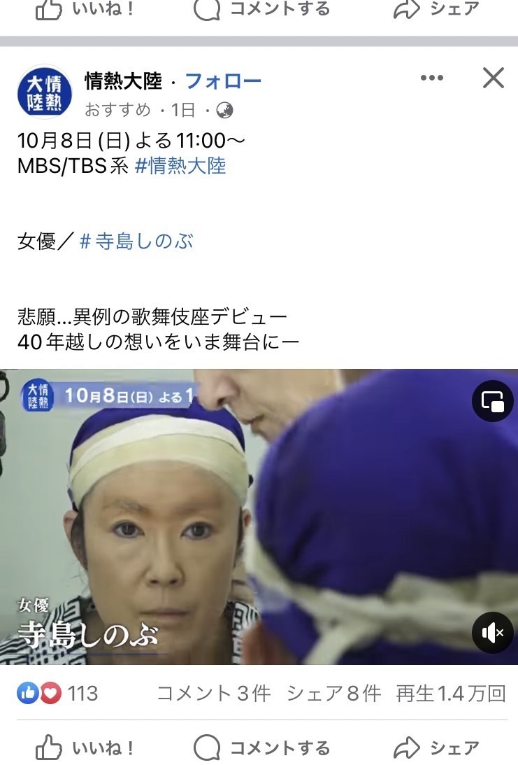 二人で立たせたとき、お婆さんに話しかけたら言葉が出なくて少し朦朧としていたから救急車を呼ぶ。私も時間が迫ってたから、救急車の方に事情と場所を伝えた。おばあさんがやっと意識がはっきりしたのか、せめて、"あなたのお名前を。名刺とか持ってる?"とおっしゃるので"私は女優なんですよ。寺島しのぶっていう"と言うと"知らないなぁ"と首を傾げるお婆さん。私もまだまだだな、、、と思いつつ。お婆さんの携帯に私の名前と電話番号を登録しその場を立ち去った。
