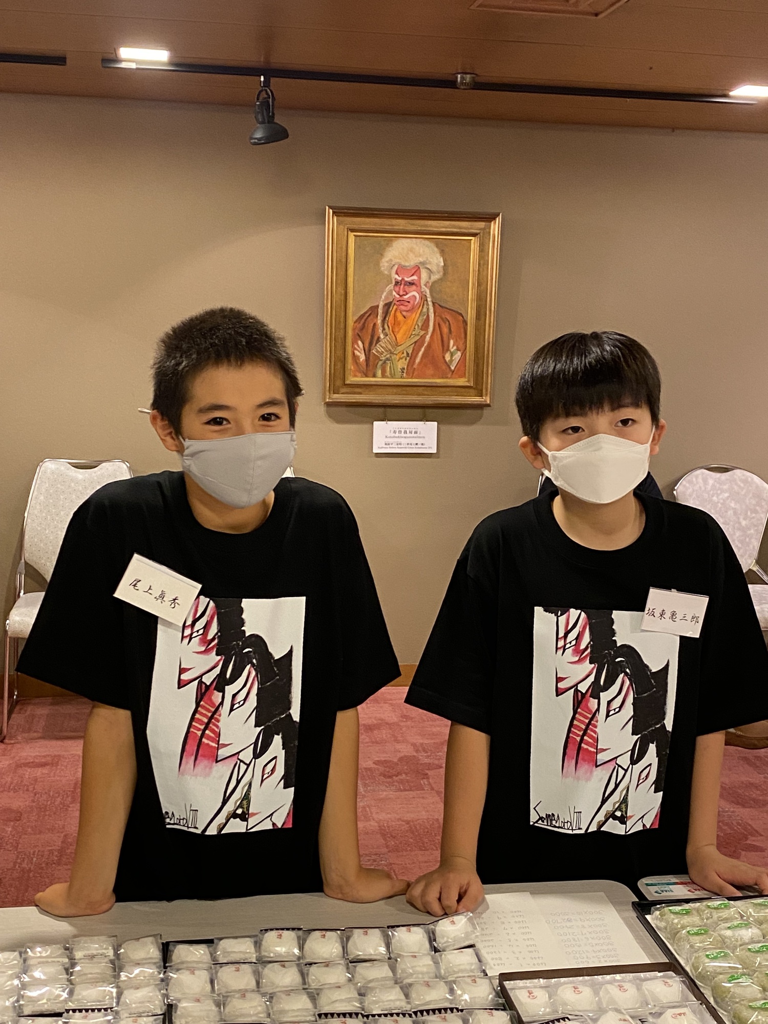 行ってきました。まずは三階で饅頭を売り、完売になった後、一階に行き、Tシャツを売る。二人ともいい声出てました。